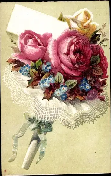 Präge Ak Blumenstrauß mit Rosen und Vergissmeinnicht