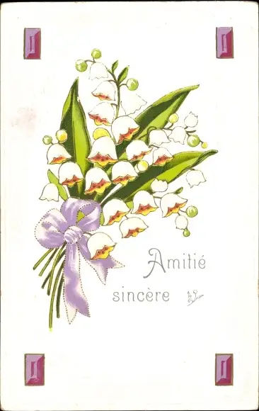 Präge Ak Blumenstrauß mit Schleife, Maiglöckchen