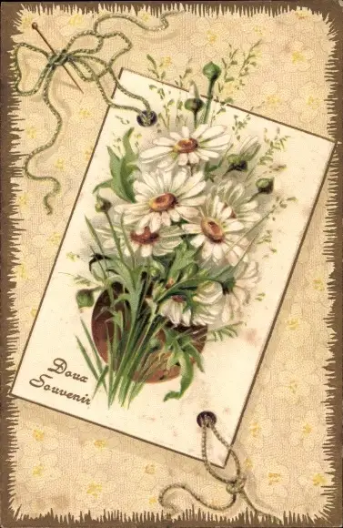 Präge Ak Doux Souvenir, Margeriten, Kitsch