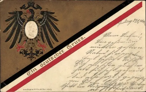 Präge Ak Ein deutscher Gruß, Kaiser Wilhelm II.