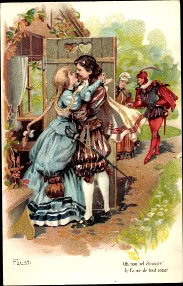 Präge Ak Faust, Gretchen, Kuss, Mephisto