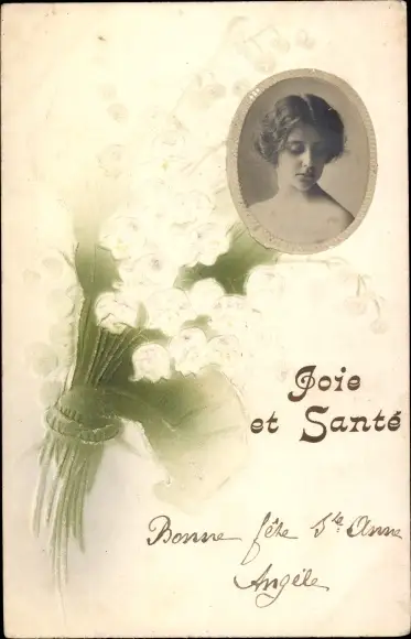 Präge Ak Frau-Portrait, Maiglöckchen, Kitsch