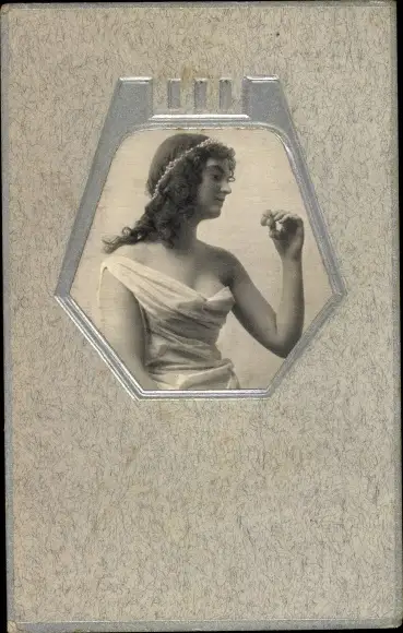 Präge Ak Frau in weißem Kleid, Portrait, Kopfschmuck
