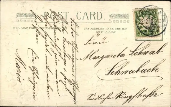gelaufen 1910, Eckknicke, Ecken bestoßen, sonst guter Zustand