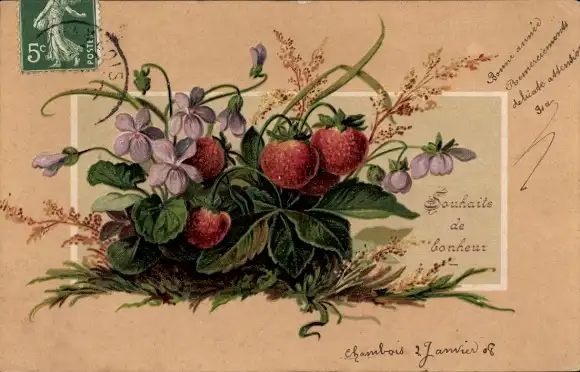 Präge Ak Früchte, Erdbeeren, Veilchen