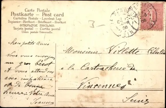Zustand, siehe Scan, gelaufen, 1906 - ca 14 cm X 9 cm