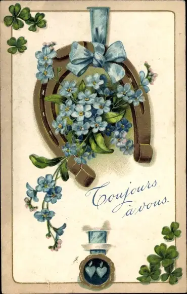 Präge Ak Glücksklee, Hufeisen, Vergissmeinnicht