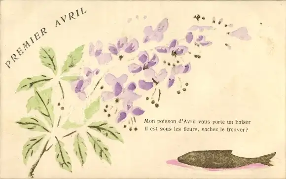 Präge Ak Glückwunsch 1. April, Fisch, Blumen