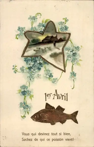 Präge Ak Glückwunsch 1. April, Fisch, Vergissmeinnicht