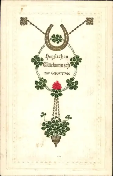 Präge Ak Glückwunsch Geburtstag, Hufeisen, Glücksklee