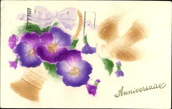 Präge Ak Glückwunsch Geburtstag, Stiefmütterchen, Taube