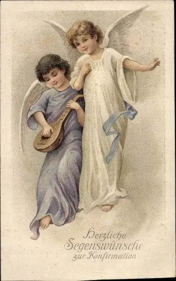 Präge Ak Glückwunsch Konfirmation, Engel mit Laute
