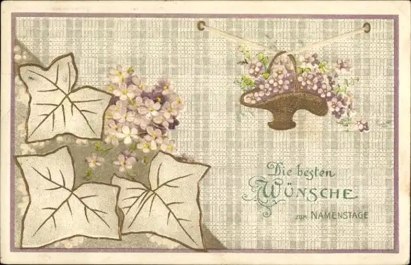 Präge Ak Glückwunsch Namenstag, Efeu, Blumenkorb
