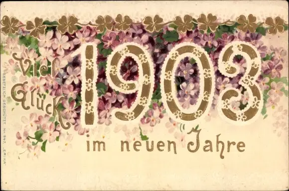 Präge Ak Glückwunsch Neujahr 1903, Veilchen