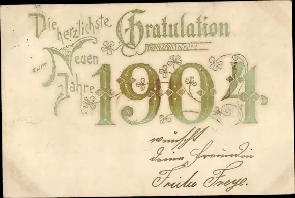 Präge Ak Glückwunsch Neujahr 1904, Glücksklee