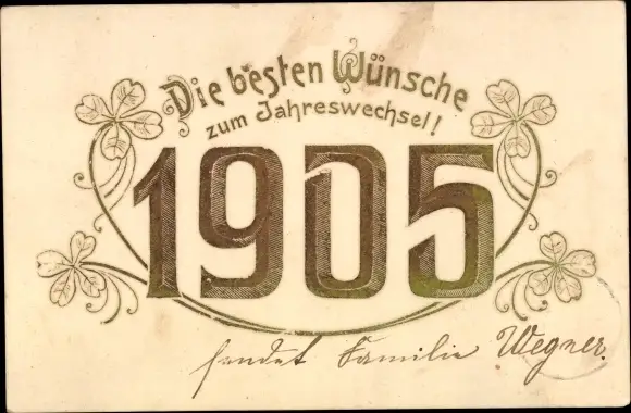 Präge Ak Glückwunsch Neujahr 1905, Glücksklee