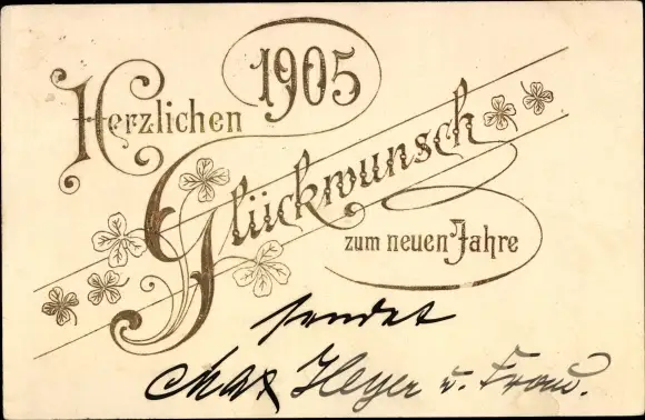 Präge Ak Glückwunsch Neujahr 1905, Glücksklee