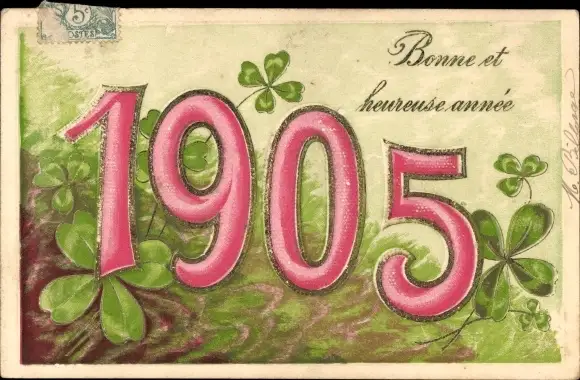 Präge Ak Glückwunsch Neujahr 1905, Glücksklee