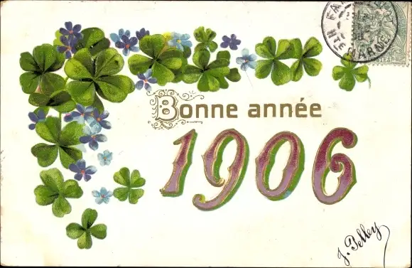 Präge Ak Glückwunsch Neujahr 1906, Glücksklee, Vergissmeinnicht