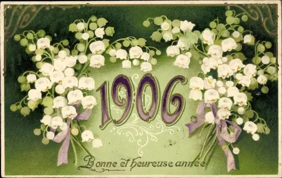 Präge Ak Glückwunsch Neujahr 1906, Maiglöckchen