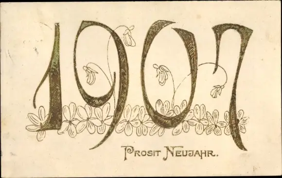 Präge Ak Glückwunsch Neujahr 1907, Blumen