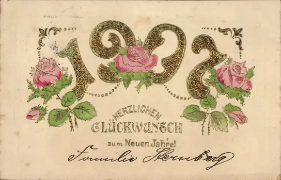 Präge Ak Glückwunsch Neujahr 1907, Rosen