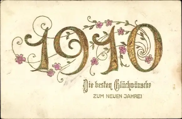 Präge Ak Glückwunsch Neujahr 1910, Blumen