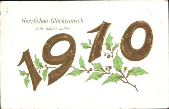 Präge Ak Glückwunsch Neujahr 1910, Stechpalme