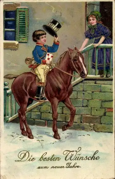 Präge Ak Glückwunsch Neujahr, Berittener Postbote