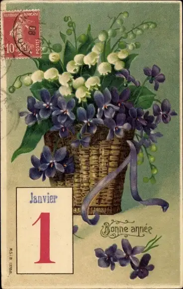 Präge Ak Glückwunsch Neujahr, Blumenkorb, Kalenderblatt