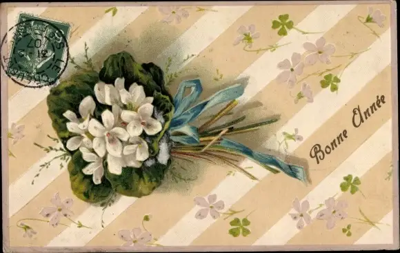 Präge Ak Glückwunsch Neujahr, Blumenstrauß, Glücksklee