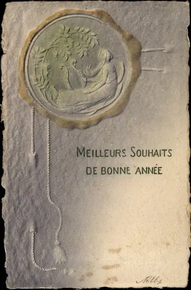 Präge Ak Glückwunsch Neujahr, Bonne Année, Dame mit Harfe