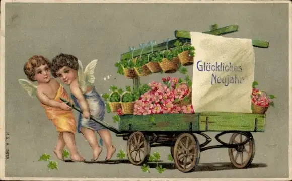 Präge Ak Glückwunsch Neujahr, Engel, Blumen