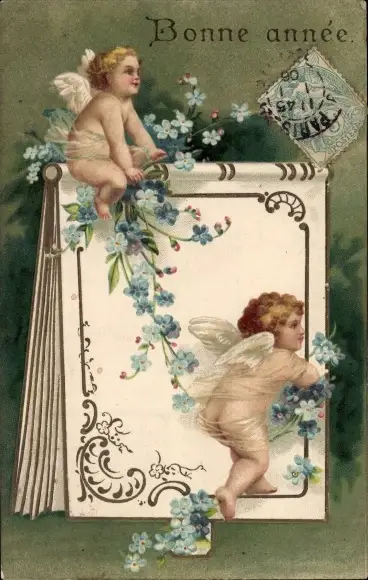 Präge Ak Glückwunsch Neujahr, Engel, Vergissmeinnicht, Notizbuch