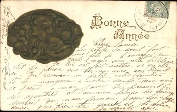 Präge Ak Glückwunsch Neujahr, Frau-Portrait, Blumen
