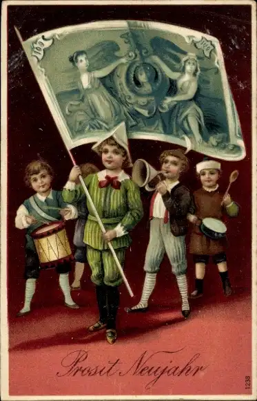Präge Ak Glückwunsch Neujahr, Geldschein als Flagge
