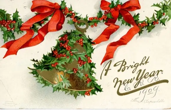 Präge Ak Glückwunsch Neujahr, Glocke, Stechpalme