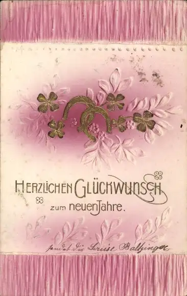 Präge Ak Glückwunsch Neujahr, Glücksklee, Hufeisen
