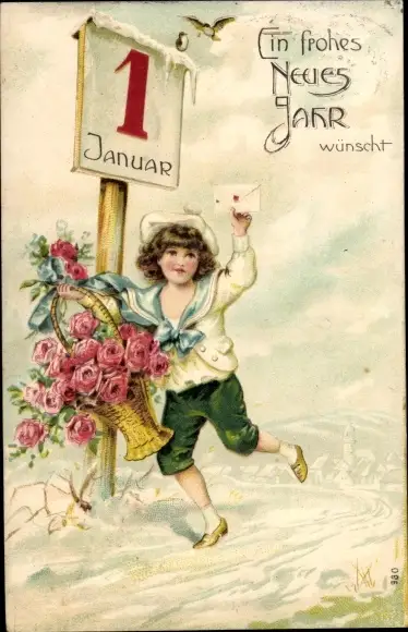 Präge Ak Glückwunsch Neujahr, Kalender, Kind, Rosen