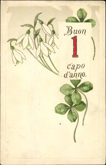 Präge Ak Glückwunsch Neujahr, Kalender, Schneeglocken, Glücksklee