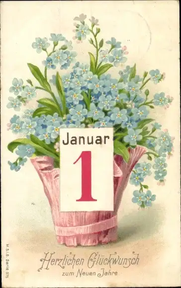 Präge Ak Glückwunsch Neujahr, Kalenderblatt, 1 Januar, Vergissmeinnicht