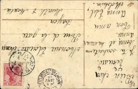 Zustand, siehe Scan, gelaufen, 1909 - ca 3 cm X 5 cm