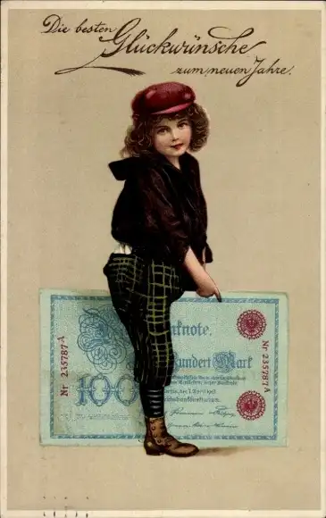 Präge Ak Glückwunsch Neujahr, Kind, Geldschein