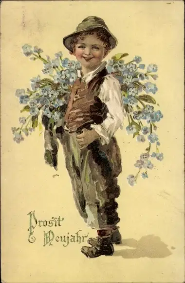 Präge Ak Glückwunsch Neujahr, Kind, Vergissmeinnicht