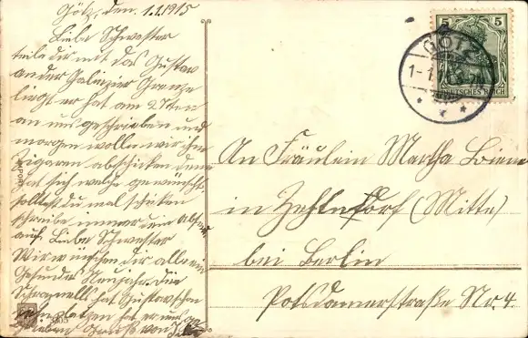 Zustand, siehe Scan, gelaufen, 1915 - ca 9 cm X 14 cm
