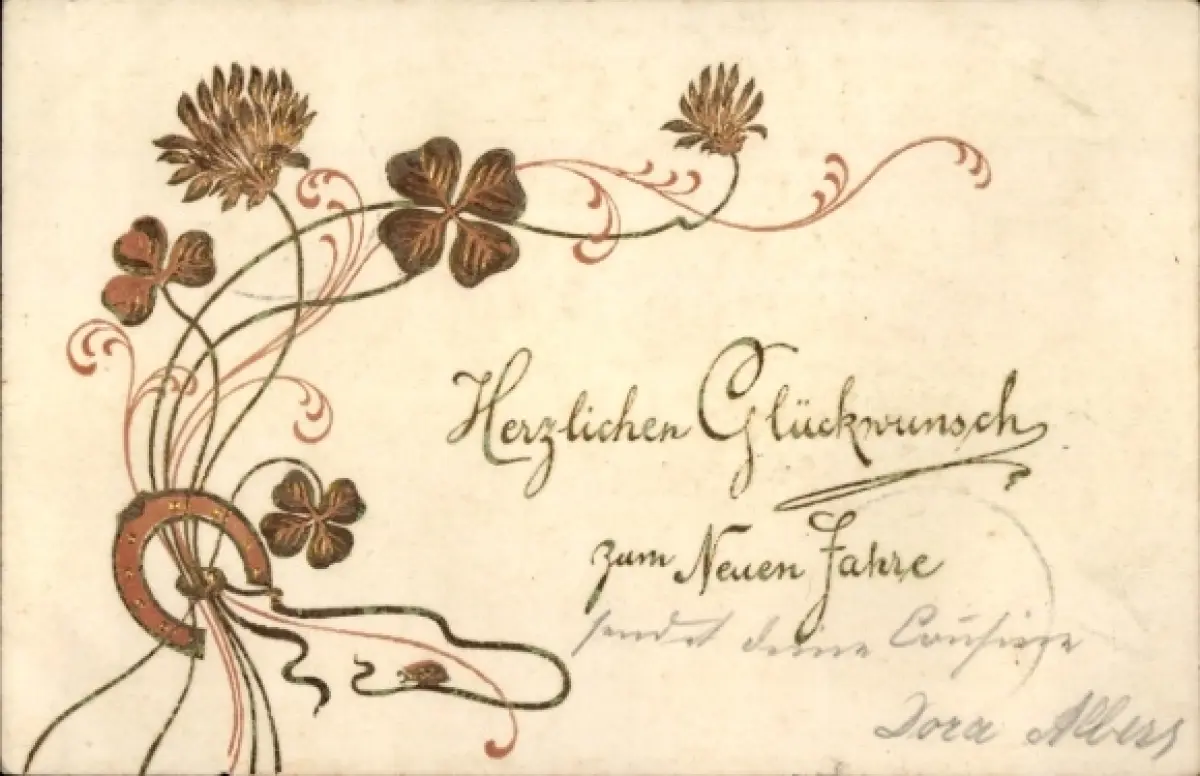 Präge Ak Glückwunsch Neujahr, Kleeblatt, Hufeisen