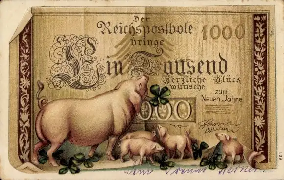 Präge Ak Glückwunsch Neujahr, Kleeblatt, Schweine