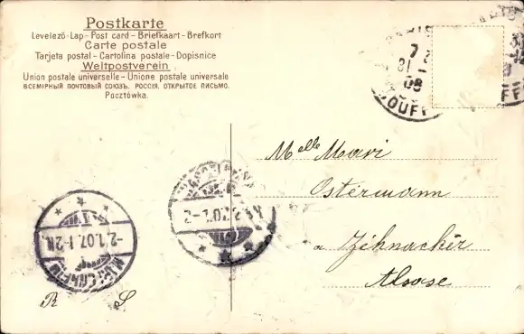 Zustand, siehe Scan, gelaufen, 1907 - ca 9 cm X 14 cm