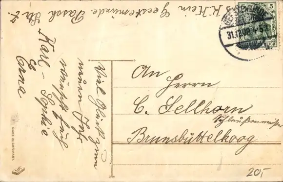 Zustand, siehe Scan, gelaufen, 1908 - ca 9 cm X 14 cm