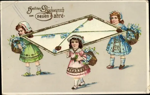 Präge Ak Glückwunsch Neujahr, Mädchen, Briefumschlag, Vergissmeinnicht